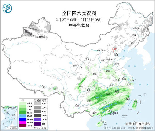 中国天气网讯 未来三天(2月28日至3月2日),新一轮大范围雨雪过程将影响我国,江南、华南等地部分地区有中到大雨,局地暴雨,北方多地将现较强降雪,正值春运返程,公众雨雪天出行请留意交通安全。
